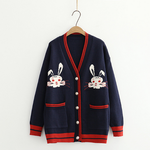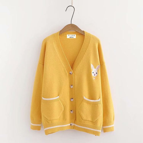 Embroidered Cute Rabbit Cardigan